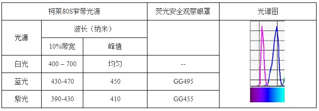 注意事項: ★勘查時必須佩帶GG495觀察眼罩 ★拍照必須加GG495濾色鏡 ★使用環(huán)境:盡量選用暗場環(huán)境