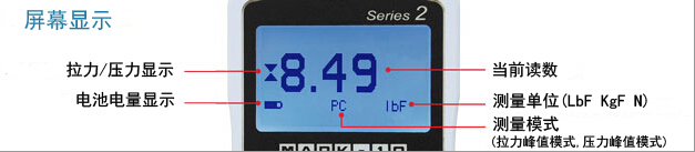 .拉壓,壓力峰值記憶 .三種測量單位切換 .緊湊式結構設計 .可設置開機后測量模式,測量單位 .500Hz采樣速率 .大屏幕背光LCD顯示屏 .9V電池或AC交流適配器供電 .屏幕反轉